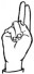 На ћирилици написано ВУКОСАВ ВУКОСАВЉЕВИЋ састоји се из 19 слова [?]. Исписано ћириличном једноручном азбуком за глувонеме: